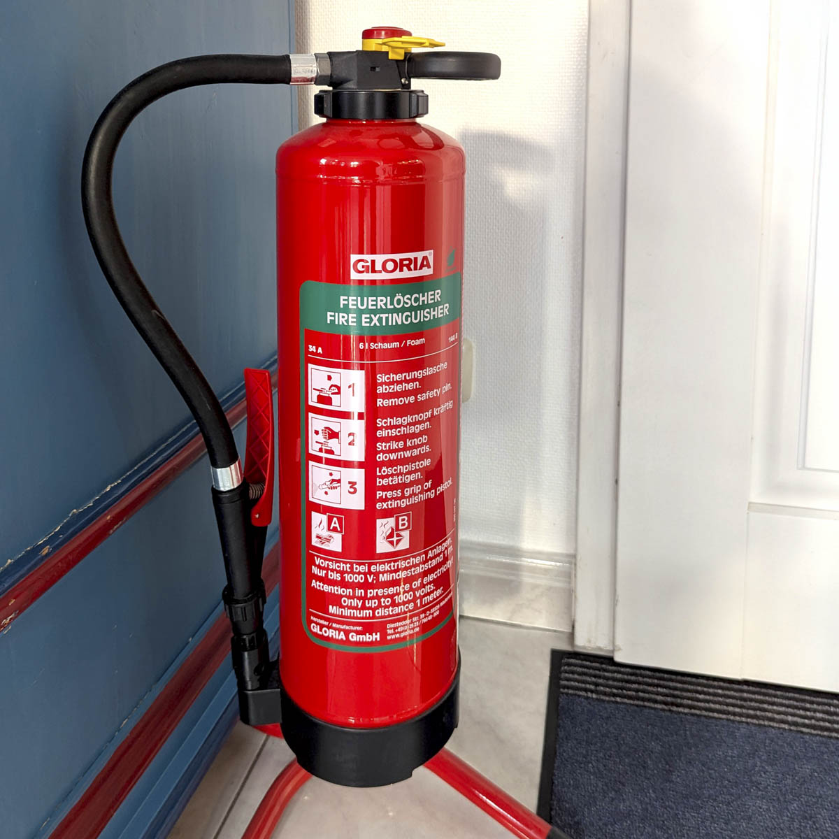 - Feuerlöscher inkl. Ständer und Bedienungsanleitung