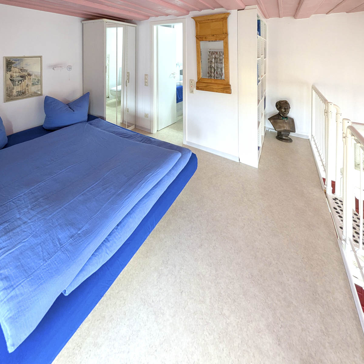 Die Deckenhöhe der Schlafempore beträgt ca. 2,11 m.